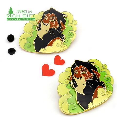 Tùy chỉnh thực hiện kim loại dập nổi logo cứng men Mỹ phim hoạt hình sư tử vua câu lạc bộ Simba ve áo pins với trở lại phun cát